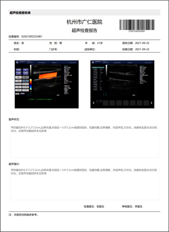 支持智能總檢評價、批量打印健康體檢報告,支持職業(yè)病/學(xué)生體檢,支持微信查看電子健康體檢報告
